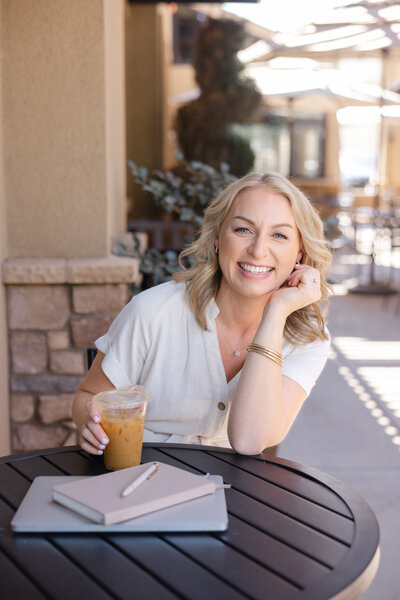 We photographed in her minimalist, calming office in Lodi and a cozy coffee shop setting—both chosen to reflect the safe, inviting, and real-world feel of how clients connect with her work.