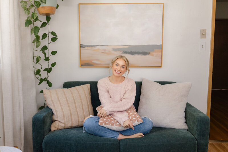 Our session flowed with ease—real laughter, gentle prompts, and relaxed energy that let Michelle’s authenticity shine. We captured a mix of seated, barefoot, and cozy poses that felt true to the safe, grounded presence she offers in her therapy space.